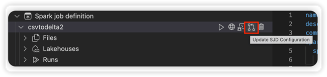 La extensión de Visual Studio Code para Fabric Data Engineering admite completamente las operaciones de definición de trabajos de Spark, como crear, leer, actualizar y eliminar (CRUD) en Fabric. Después de crear una definición de trabajo de Spark, puede cargar más bibliotecas a las que se hace referencia, enviar una solicitud para ejecutar la definición de trabajo de Spark y comprobar el historial de ejecución.