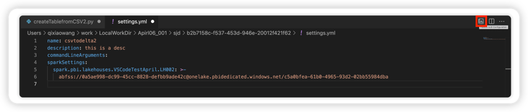 Para enviar una solicitud para ejecutar la definición de trabajo de Spark desde VS Code: