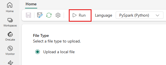En el menú superior, seleccione el icono Ejecutar.
