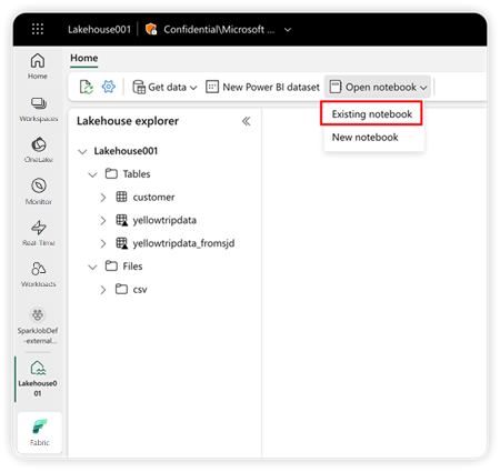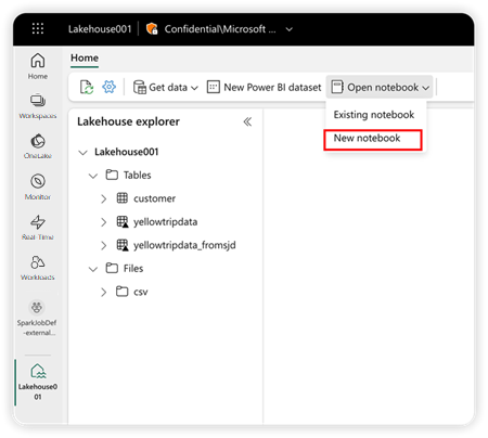 Para explorar tus datos de lakehouse, puedes agregar el lakehouse a un cuaderno existente o crear un nuevo cuaderno a partir del lakehouse.