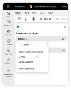 Puede agregar múltiples casas del lago al mismo cuaderno. Al cambiar la casa del lago disponible en el panel izquierdo, puede explorar la estructura y los datos de diferentes casas del lago.