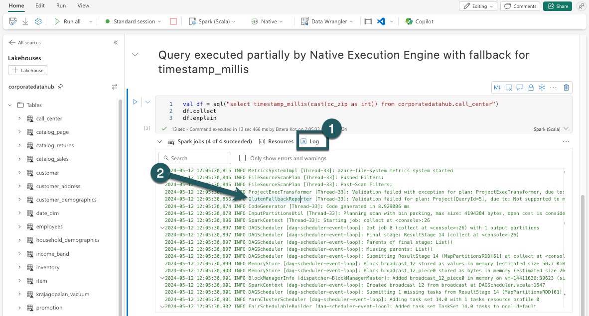 En algunos casos, es posible que el motor de ejecución nativo no pueda ejecutar una consulta debido a motivos como características no admitidas. En estos casos, la operación vuelve al motor de Spark tradicional. Este mecanismo automático de respaldo garantiza que no haya interrupción en el proceso de trabajo.