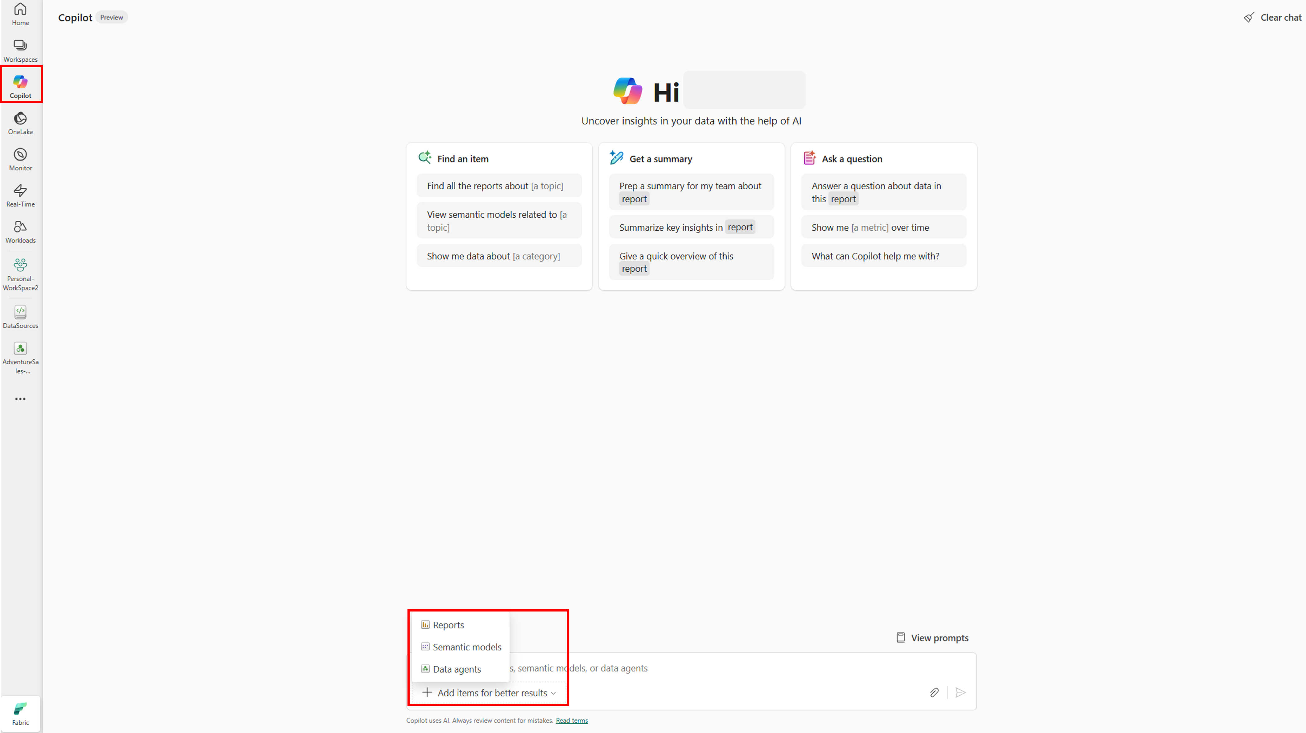 Uso del agente de datos de Fabric en Copilot en Power BI