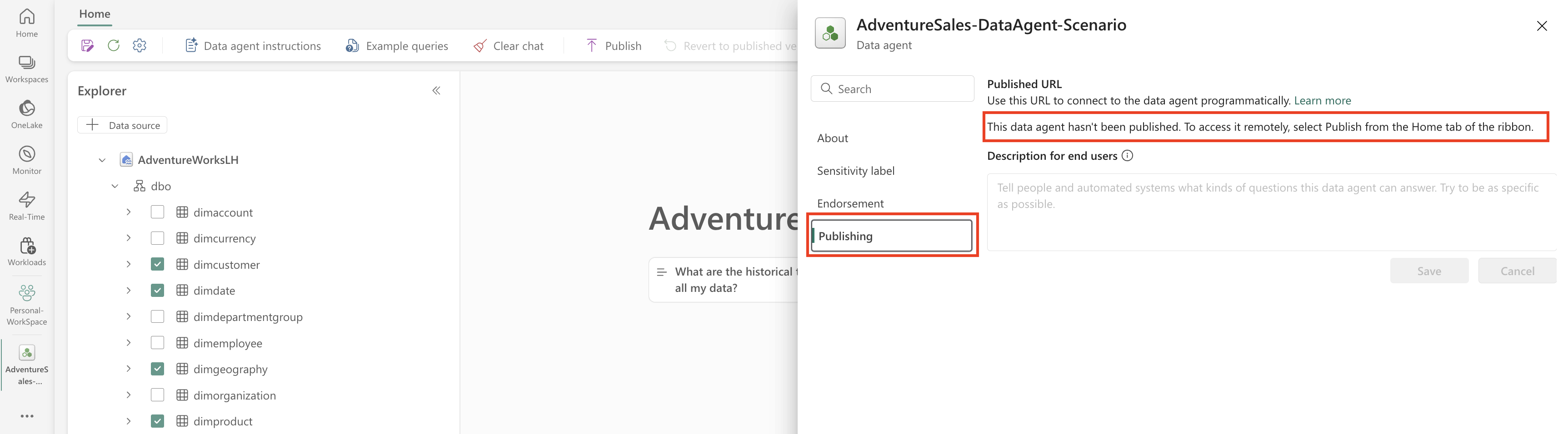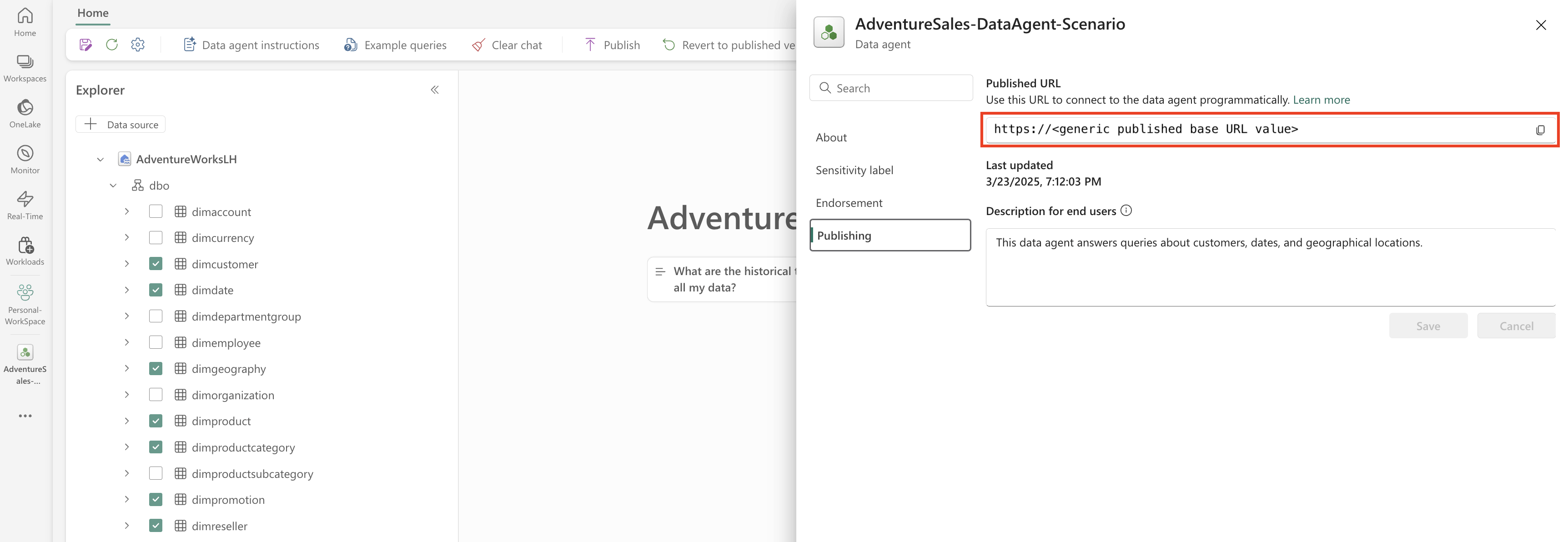 Publicar el agente de datos de Fabric