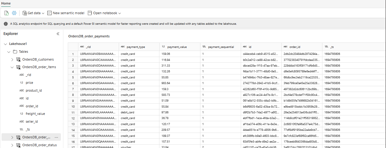 Puede ver todas sus bases de datos reflejadas en el espacio de trabajo Fabric.