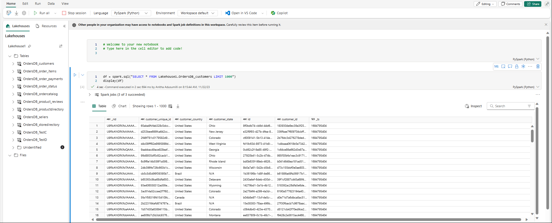 Puede explorar los datos replicados desde la base de datos reflejada con consultas de Spark en cuadernos.
