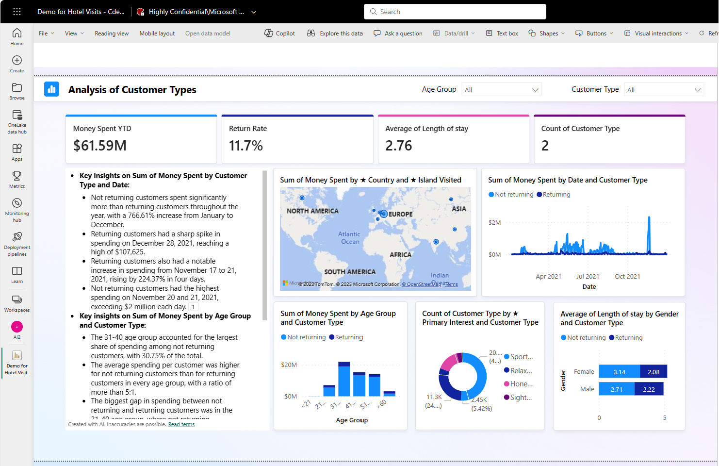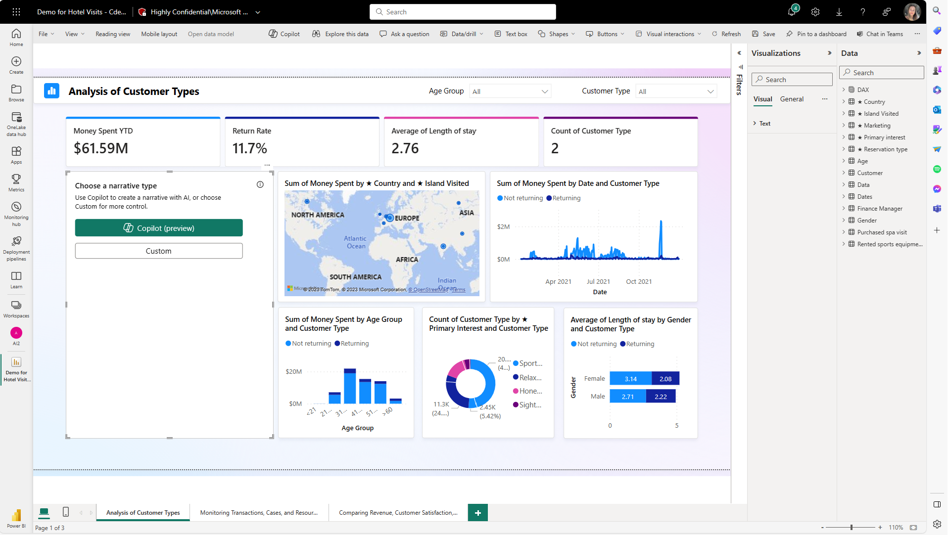 Cuando esté satisfecho con la narración, guarde el informe igual que cualquier otro. Si cierra y vuelve a abrir el informe que Copilot ha generado en el servicio Power BI, el informe se abre en la vista de lectura y no verá Copilot.