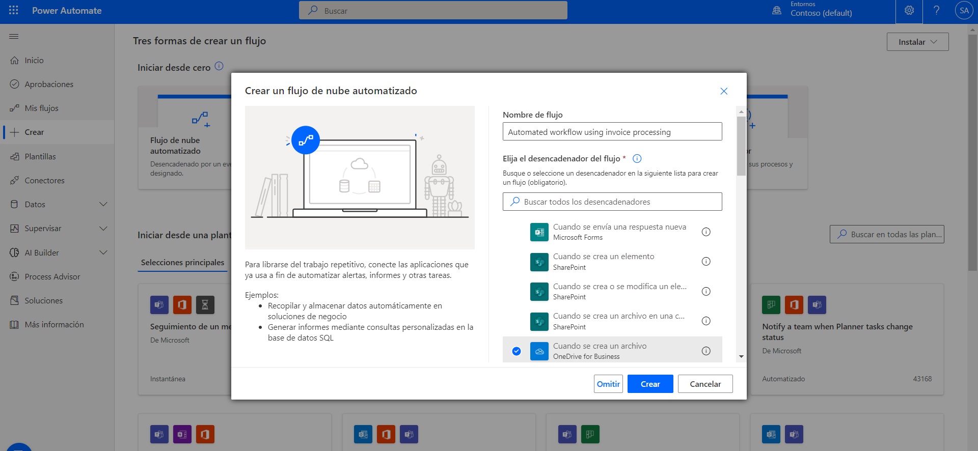 Crear un flujo de trabajo automatizado utilizando el procesamiento de facturas