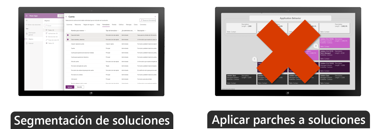 Con la segmentación, puede exportar soluciones con activos de tabla seleccionados, como columnas, formularios y vistas. La segmentación también permite un desarrollo granular.