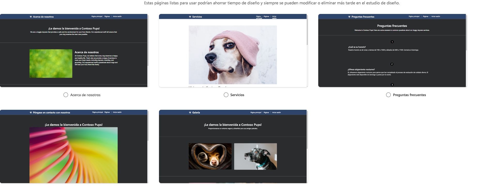 Mi guardería para perros, Contoso Pups, necesita un sitio web para aceptar perros nuevos.