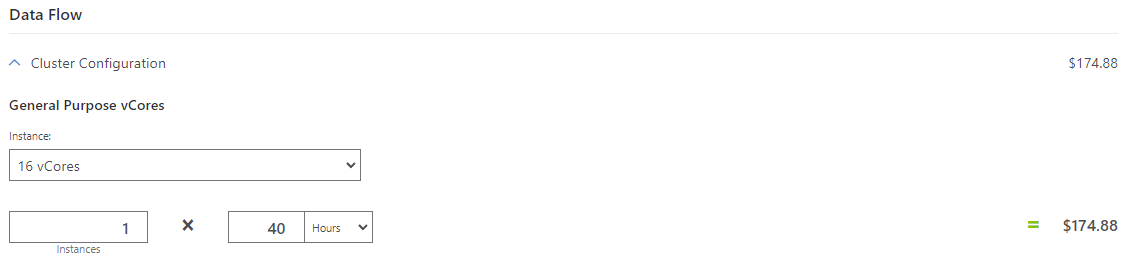 | Data Flow Assumptions: General purpose 16 vCore hours per execution = 10 min | 10 min \ 60 min |