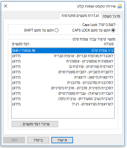 אני מנסה להגדיר מעבר שפות alt+shift ימין לעיברית ו alt+shift שמאל לאנגלית