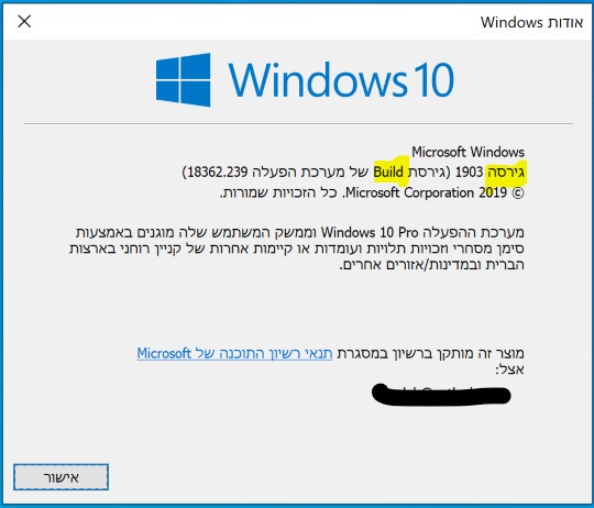 - באיזו גירסה של Windows 10 מדובר? ניתן למצוא זאת על ידי הקשת winver