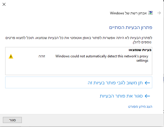 כאשר אני מנסה לגלות מהי הבעיה באבחון הרשת, אני מקבלת את ההודעה הבאה: