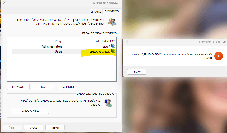 תודה על המשוב שלך. אם אתה מנסה להסיר את המשתמש המחובר ב- Windows. עליך לחפש את לוח הבקרה בסרגל החיפוש ולפתוח אותו, למצוא חשבונות משתמשים, לבחור נהל חשבונות משתמשים ולמחוק חשבונות לא רצויים. באפשרותך לבחור למחוק רק את המשתמש או למחוק את הקבצים שבתוכו ולמחוק את המשתמש. האחרון דורש ממך לגבות קבצים חשובים.