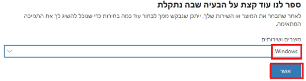 5בחר Windows במוצרים ושירותים ולאחר מכן לחץ על לחצן אישור בתחתית