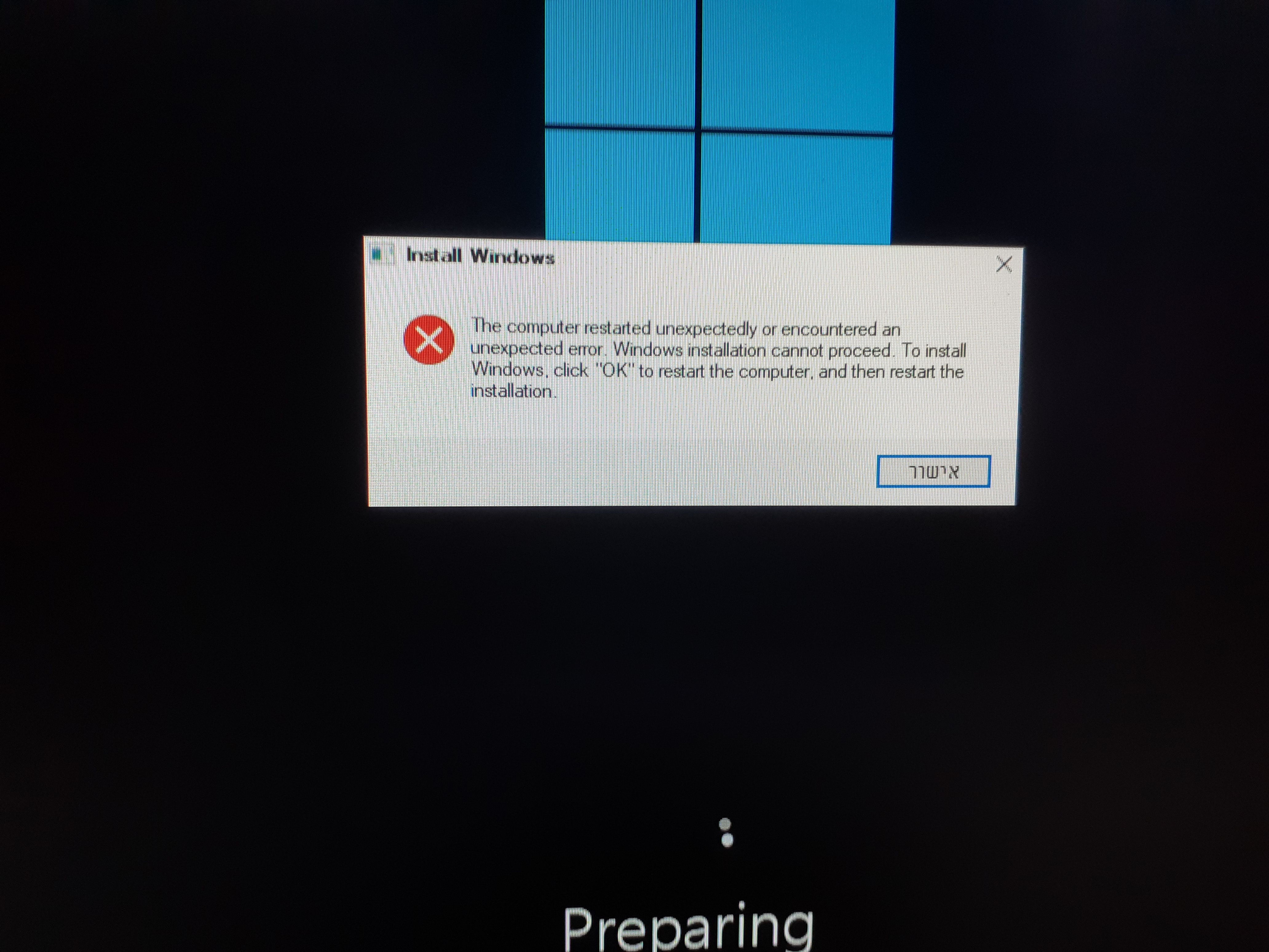 עבור אל פתרון בעיות - אפשרות מתקדמת - תיקון אתחול