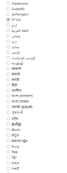 לחץ על זה ותופיע לך רשימה של שפות , בחר עברית ברשימה ואז לחץ על כפתור Save.