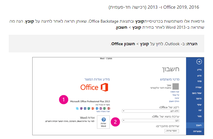 3.מהי גירסת ה- Office המדוייקת שברשותך? בכדי למצוא זאת, ניתן לעייןבמאמר הבא