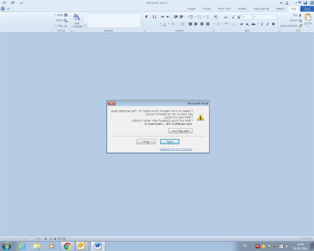 בזמן פתיחת קובץ word קיים מופיע לי שגיאה כי הקובץ פגום - רצ"ב תמונה.