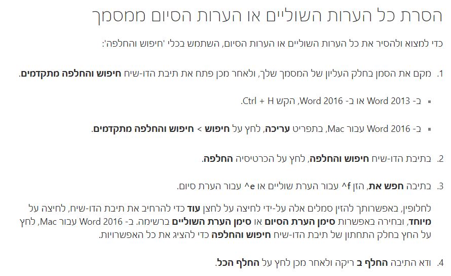 בכדי למחוק את כל ההערות, עקוב אחר המאמר הזה ---> מחיקת הערות שוליים או סיום