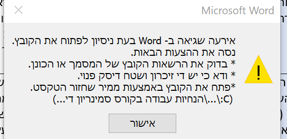 אני מבינה שאת נתקלת בשגיאה הזו כל פעם שאת מורידה קובץ Word .