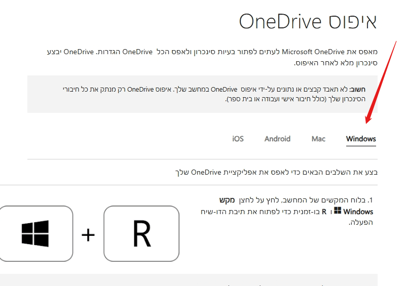 איפוס OneDrive