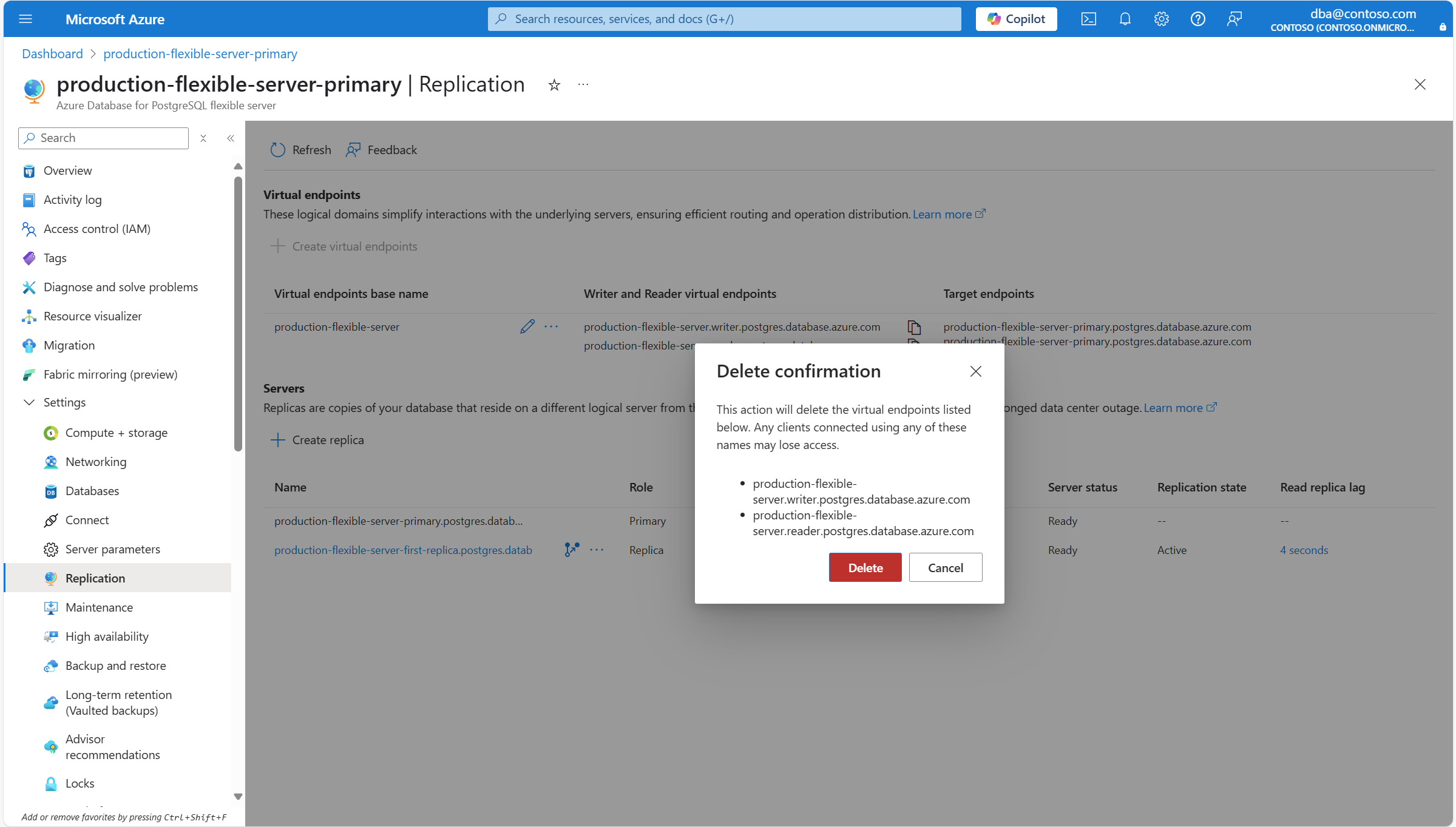 Select the Azure Database for PostgreSQL flexible server instance for which you want to delete its associated virtual endpoints.