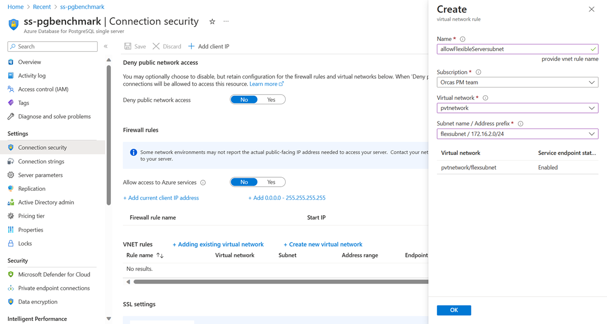 After you complete these steps, the single server is set up to accept connections from the flexible server's subnet for secure communication between the two servers.