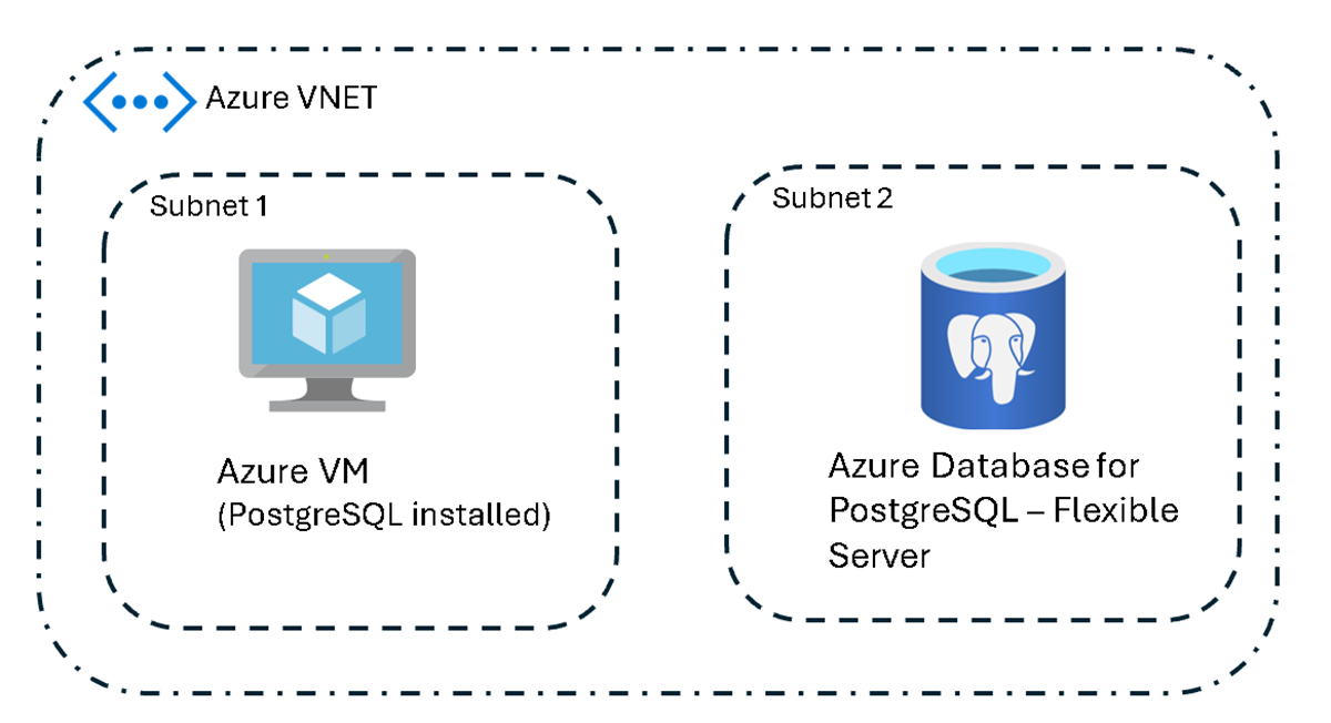 | PostgreSQL installed on an Azure virtual machine (VM) in the same virtual network or in a different virtual network | VNet-integrated Azure Database for PostgreSQL flexible server in the same virtual network or in a different virtual network | Yes |