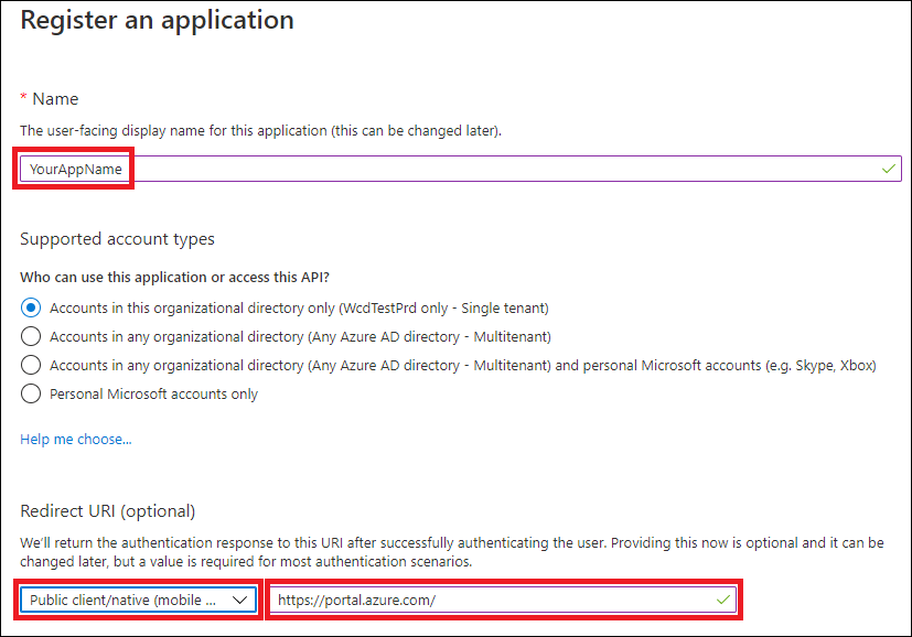 בטופס, בחר שם עבור היישום והזן את המידע הבא עבור ה- URI של ניתוב מחדש ולאחר מכן בחר הירשם.