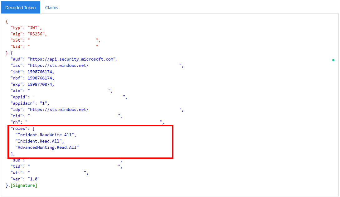 JWT פירושואסימון אינטרנט של JSON. האסימון המפענח מכיל כמה פריטים או דרישות בתבנית JSON. ודא שתביעת התפקידים בתוך האסימון המפענח מכילה את ההרשאות הרצויות.