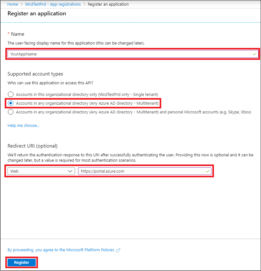 - צור יישום מרובה דיירים Microsoft Entra זה.