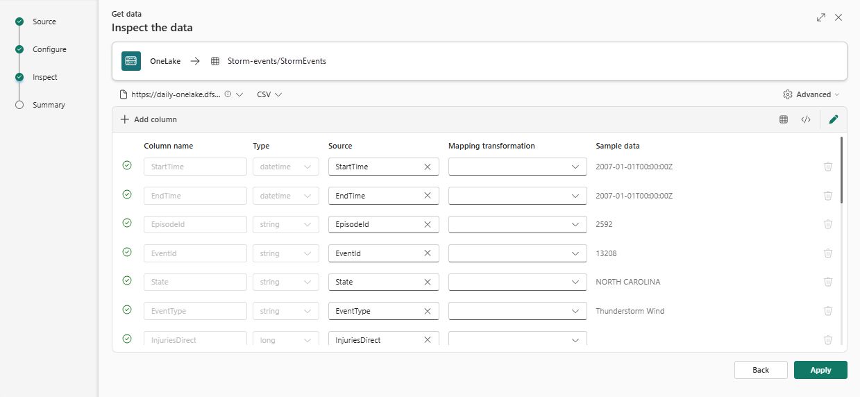 If you're ingesting tabular formats in an existing table, you can select Advanced > Keep table schema. Tabular data doesn't necessarily include the column names that are used to map source data to the existing columns. When this option is checked, mapping is done by-order, and the table schema remains the same. If this option is unchecked, new columns are created for incoming data, regardless of data structure.