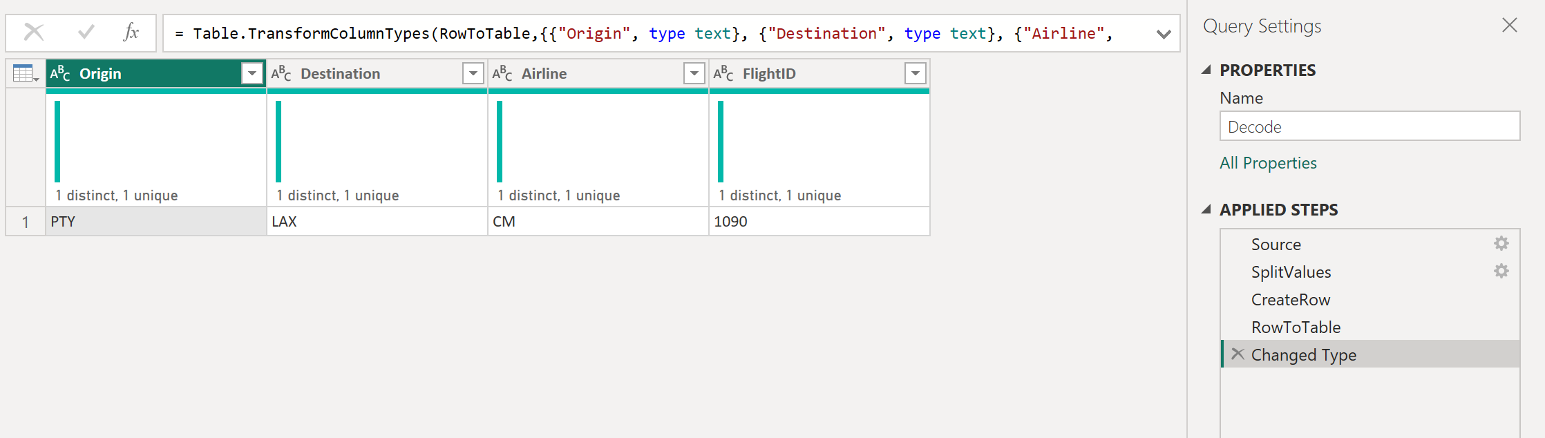 From that parameter, you create a new query where you apply the transformations that you need. For this case, you want to split the code PTY-CM1090-LAX into multiple components: