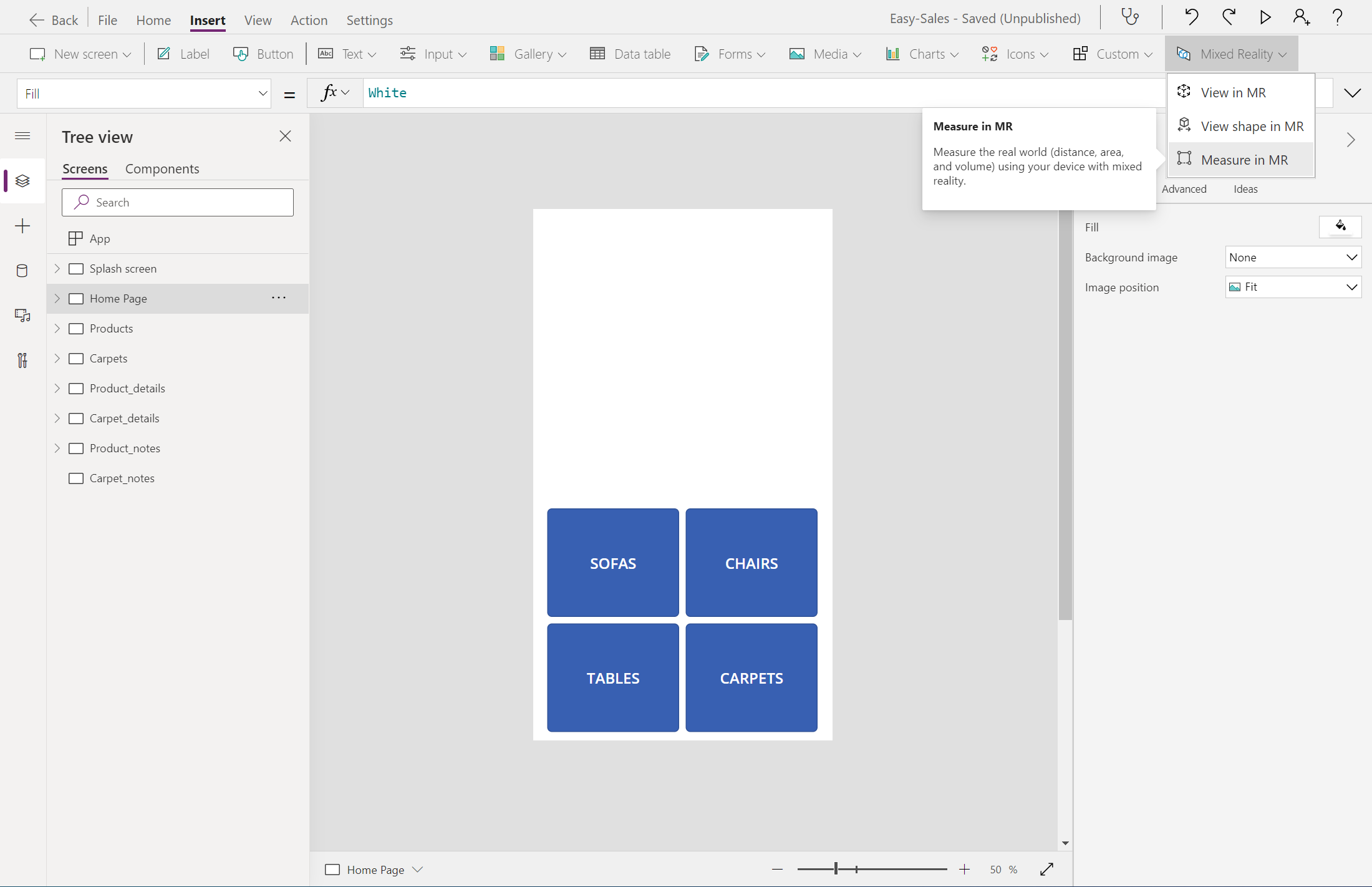 נווט אל הבית. בכרטיסיה הוספה , את הרשימה הנפתחת מציאות משולבת ובחר מידה ב- MR.