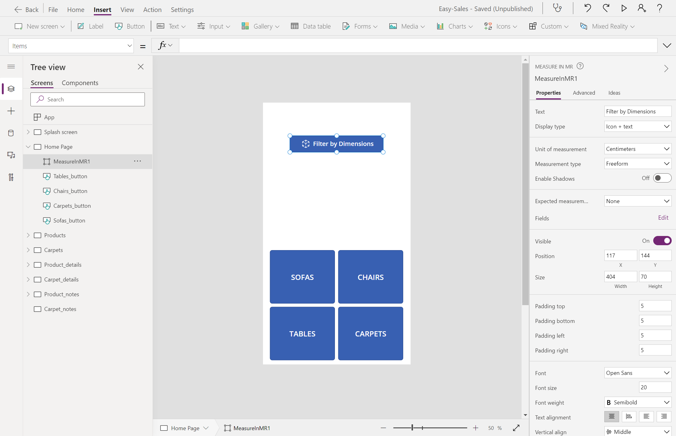 ביחידה זו, תשתמש בחלק מהרכיבים הפונקציונליים הראשיים של Power Apps. הדבר כולל מדיד בדרכים MR וסינון. המשתמשים יכולים למדוד את המרחק, השטח ועוצמת הקול בעולם האמיתי באמצעות העוצמה של Power Apps מדידה ברכיב MR.