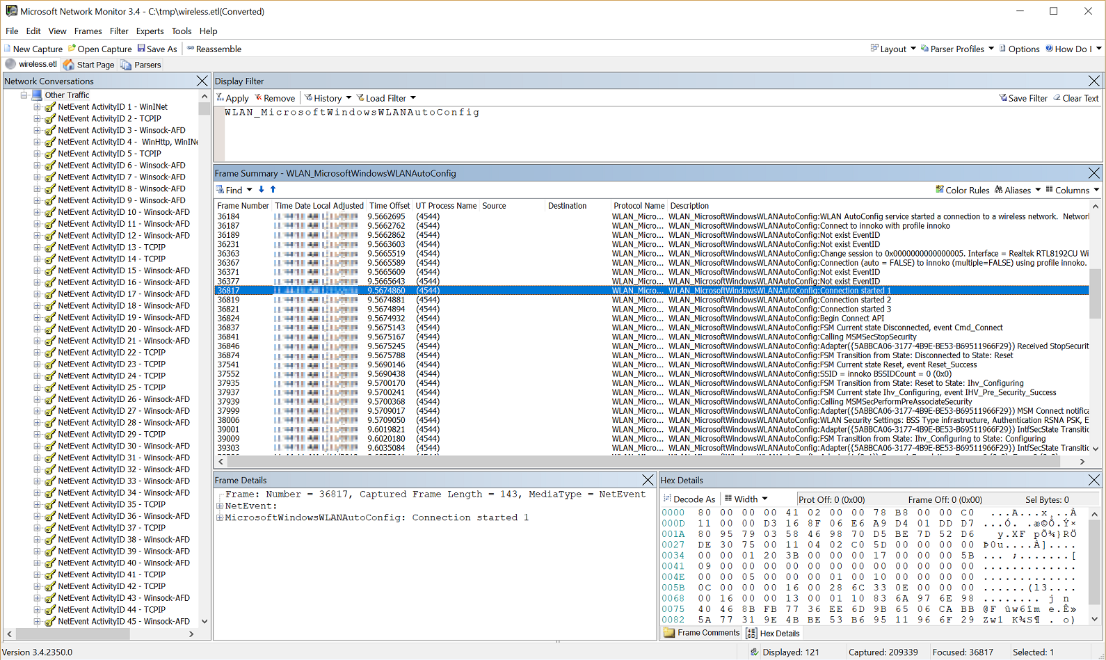 If you have a wireless trace, you can also view ETL files with network monitor and apply the ONEX_MicrosoftWindowsOneX and WLAN_MicrosoftWindowsWLANAutoConfig Network Monitor filters. If you need to load the required parser, see the instructions under the Help menu in Network Monitor. Here's an example: