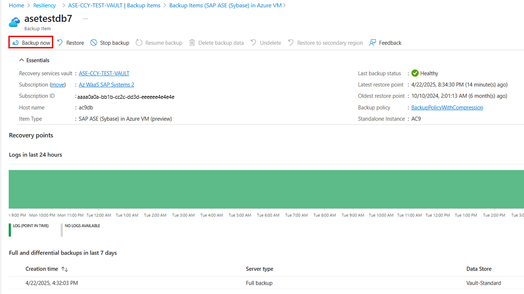 Run an on-demand backup for SAP ASE database