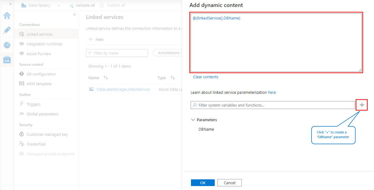 Natively supported in UI: When authoring linked service on UI, the service provides built-in parameterization experience for the following types of linked services. In linked service creation/edit blade, you can find options to new parameters and add dynamic content. Refer to UI experience.
