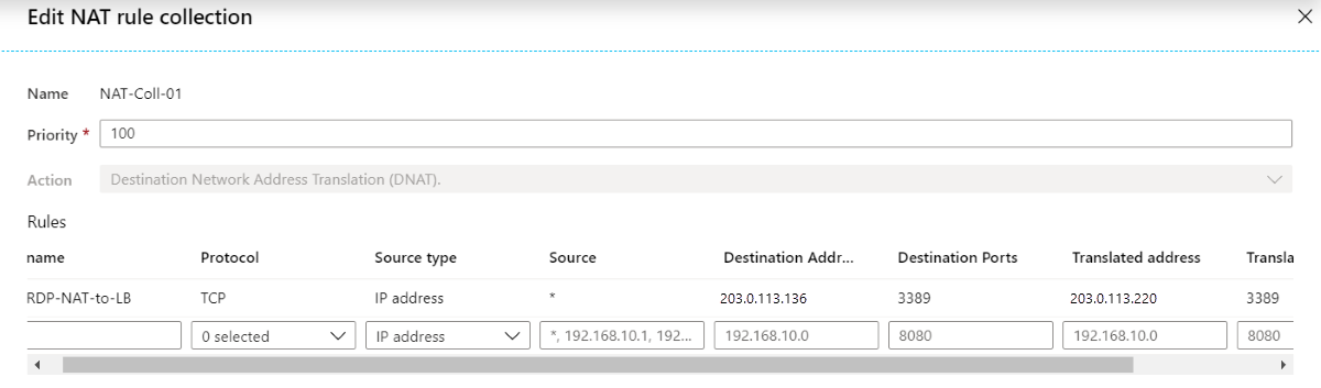 For example, create an NSG on the backend subnet where the load-balanced virtual machines are located. Allow incoming traffic originating from the firewall's public IP address and port. If a NAT Gateway is associated with the Azure Firewall subnet, allow incoming traffic originating from the NAT Gateway's public IP address and port.