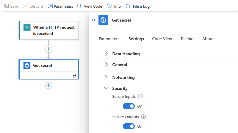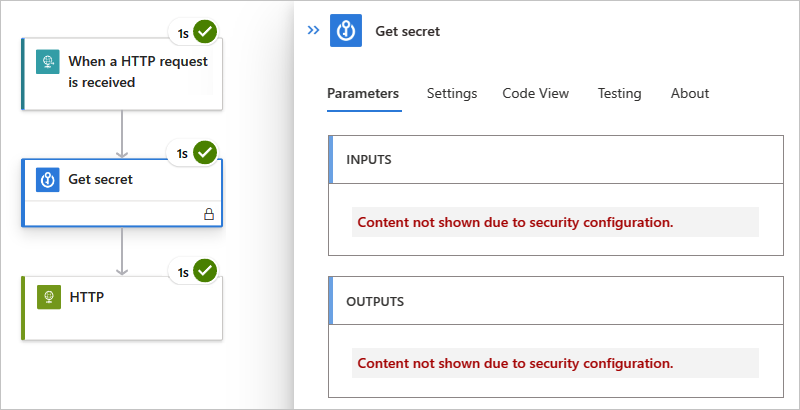In many triggers and actions, you can secure the inputs, outputs, or both in a logic app's run history.