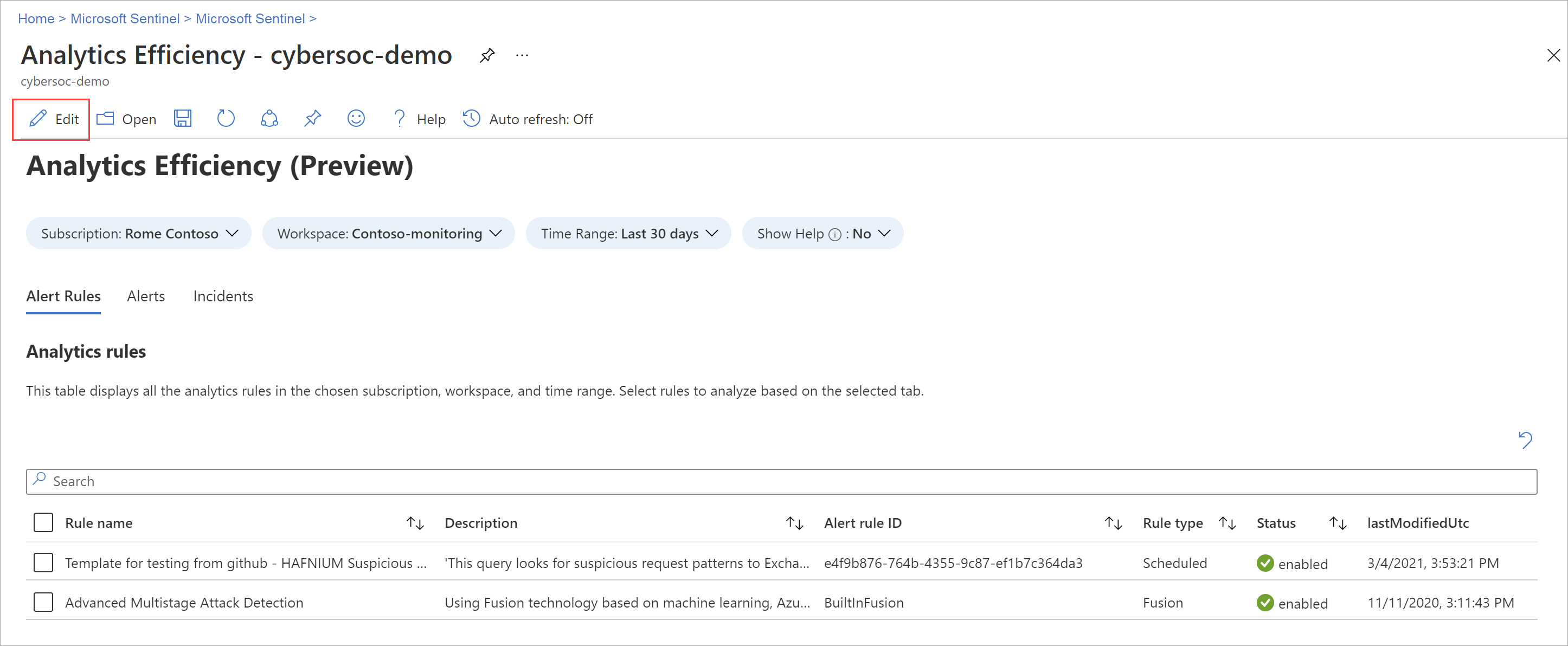 To edit the workbook, select Edit, and then add text, queries, and parameters as necessary.