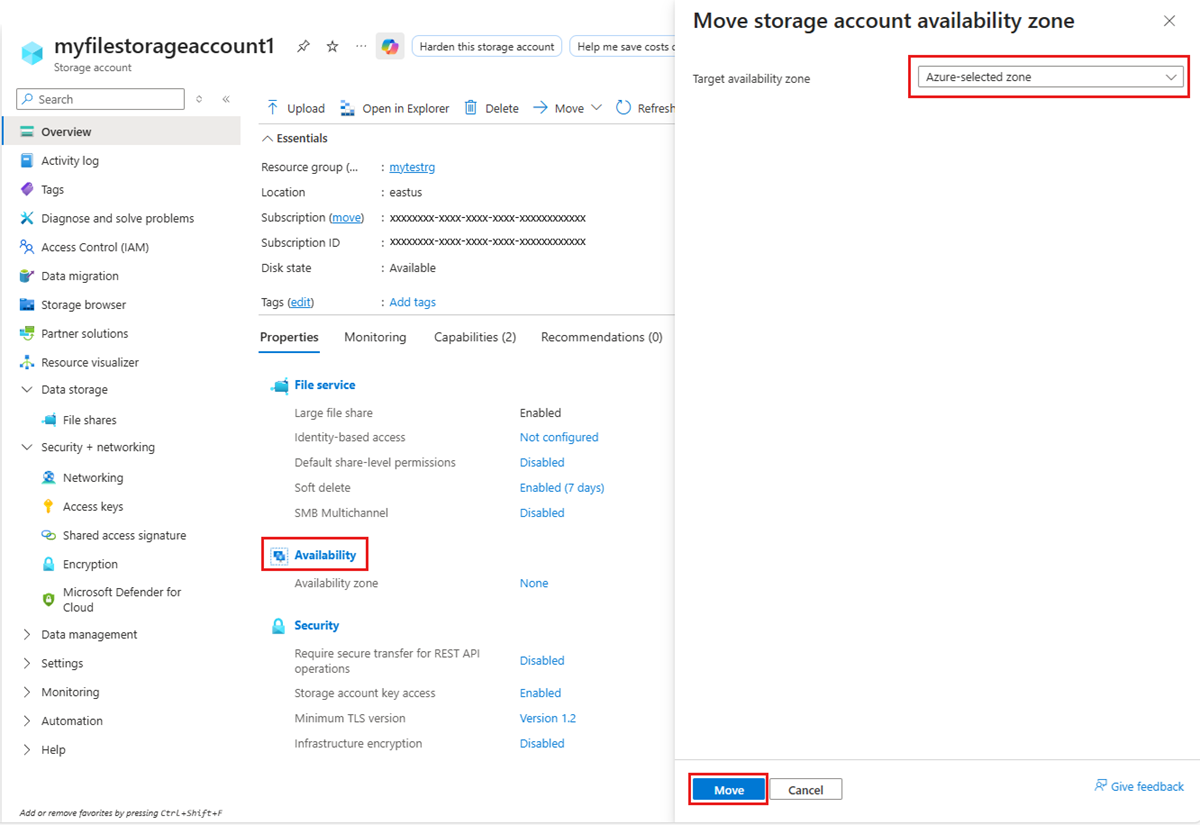 Choose Azure-selected zone, and then select Move.
