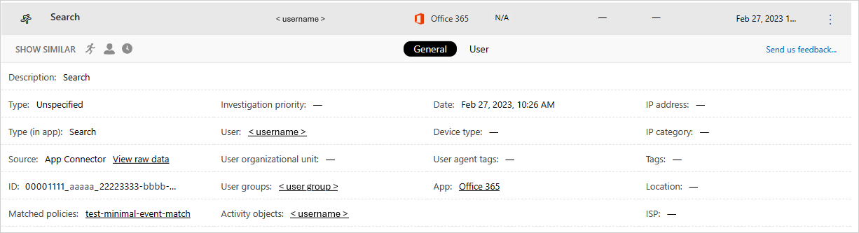 Matched policies: Select the Matched policies link to see a list of policies this activity matched.