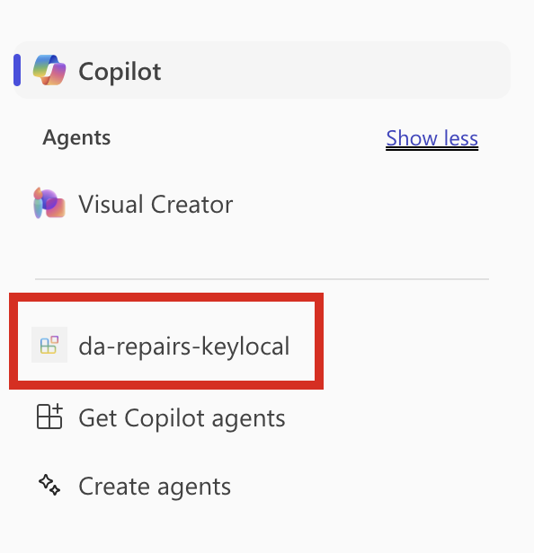 From the side panel, select the da-repairs-keylocal agent.