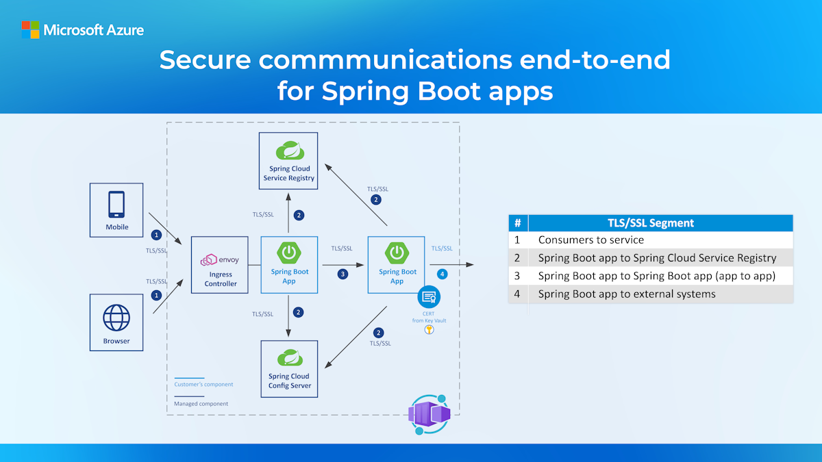 With Azure, you can secure communications end-to-end or terminate transport-level security at any communication point. You can also automate the provisioning and configuration for all the Azure resources needed for securing communications.