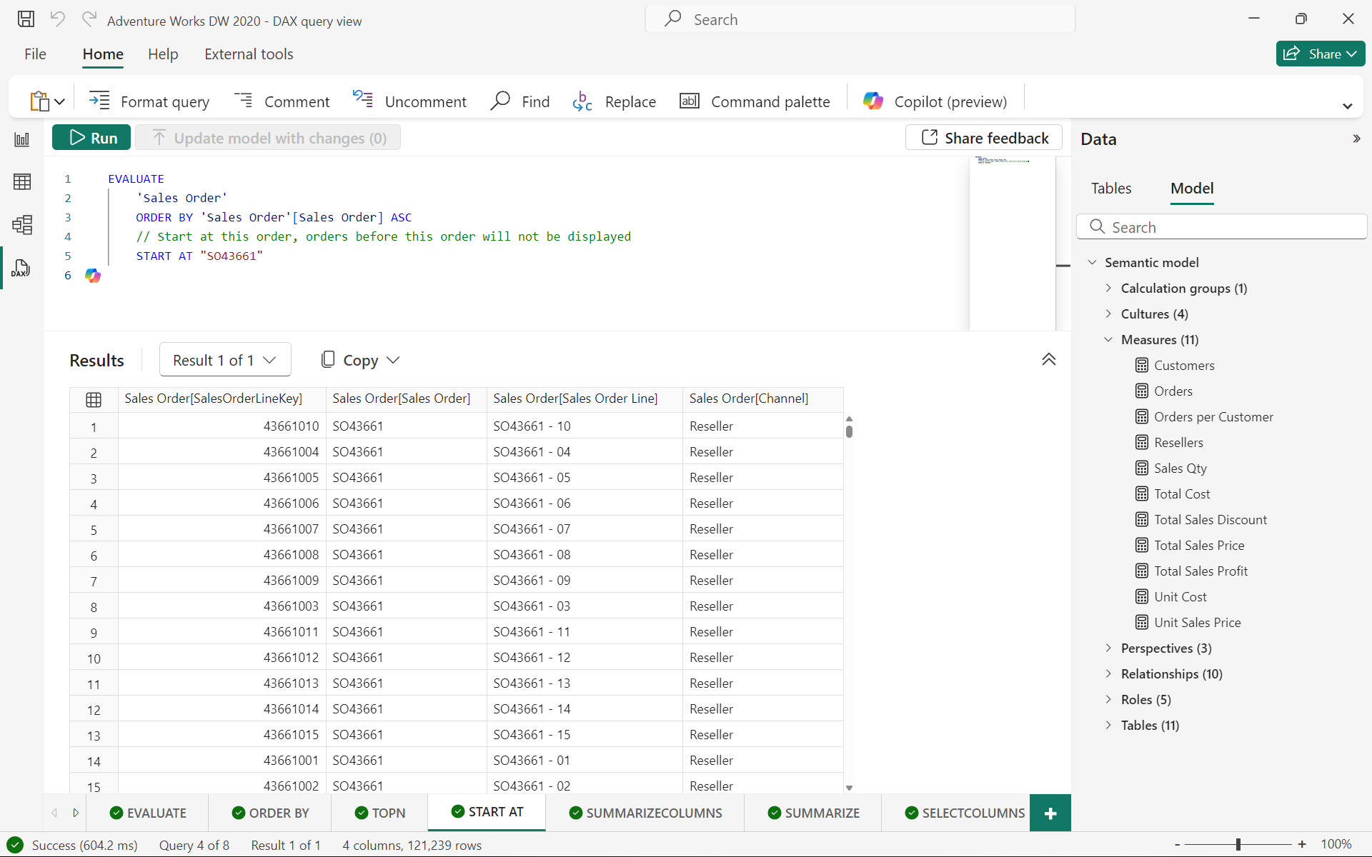 ORDER BY 'Sales Order'[Sales Order] ASC
