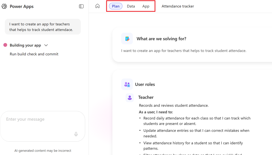 Novi radni prostor koristi jedinstveni, objedinjeni chat koji održava kontekst dok prelazite između Plana, Data i Aplikacije. Ubrzava razvoj jer vam omogućuje vizualni pregled aplikacije, pregled koda i izmjene unutar teksta, sve to bez napuštanja radnog prostora.
