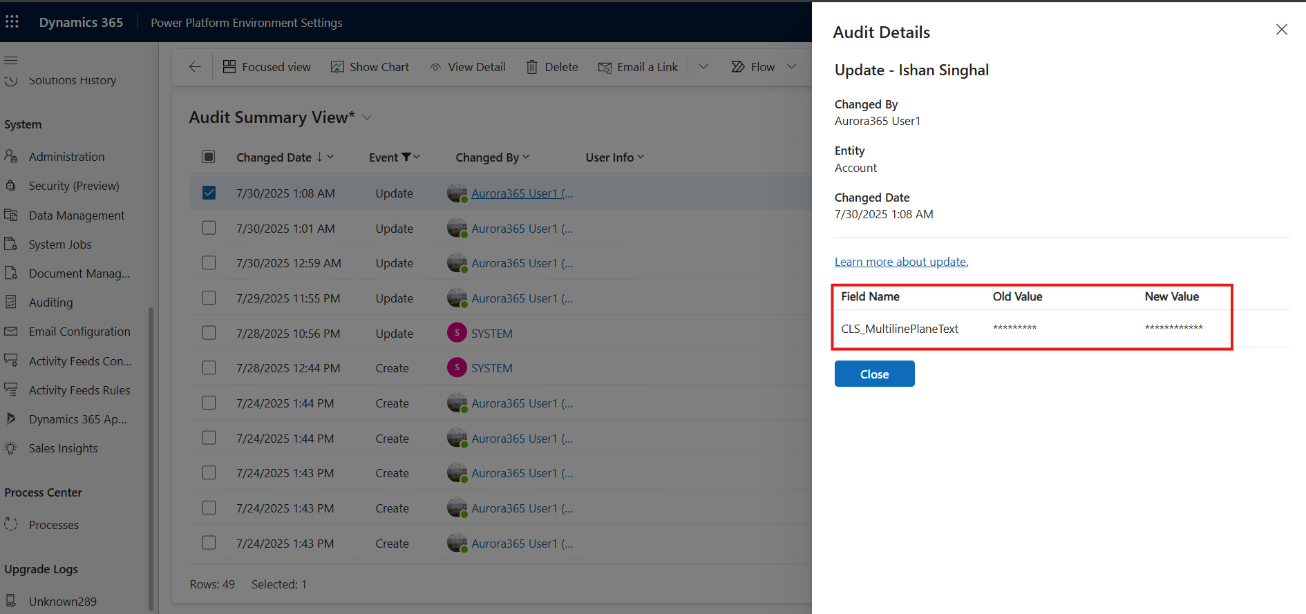 Svi događaji stvaranja i ažuriranja zapisa prikazat će vrijednosti prije i poslije kao maskirane vrijednosti.